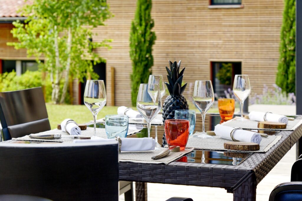 Restaurant En Marge, sa terrasse, son jardin et son salon du Chef
